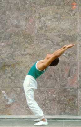 and keep your legs straight. Inhale while leaning backward and exhale