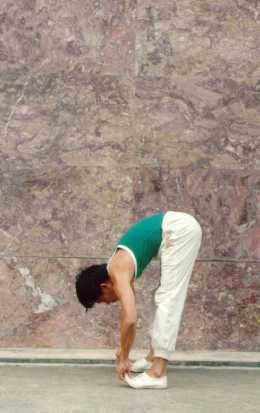 while bending down. If you are not limber enough to reach your toes,